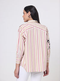Description: Stripe Pattern Shirt with Sequin Embroidery
